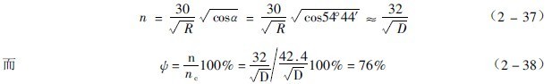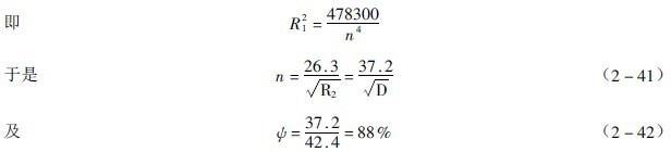 應用公式(2-36)來決定轉速時,有兩種方法。首先用外層球有落下高度來定轉速。若取外層球的半徑即磨機的內半徑,由公式(2-2)得到