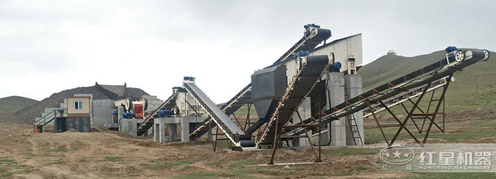 由顎破、反擊破組成的碎石生產線,成品規格多、粒型好